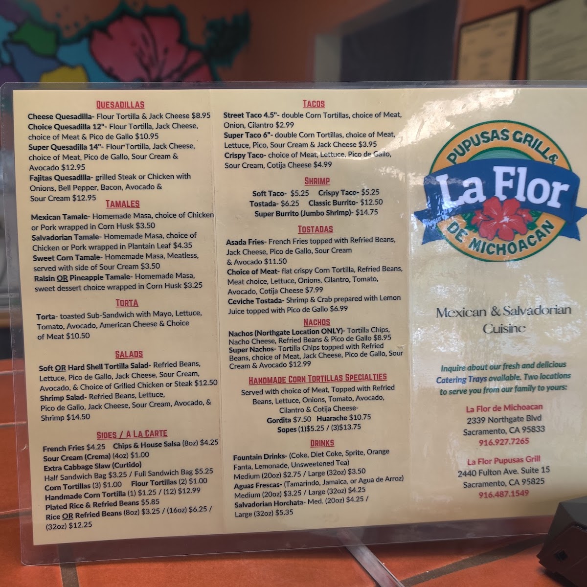 La Flor Pupusas Grill offers an authentic taste of El Salvador right in the heart of Sacramento. With a menu that features beloved specialties, their pupusas are undoubtedly the highlight—fresh, flavorful, and made to order. Patrons rave about the delightful combinations, including the classic pork, cheese, and bean fillings. Each dish is accompanied by vibrant sides, like tangy pickled encurtido and a spicy hot sauce that elevates the flavors.